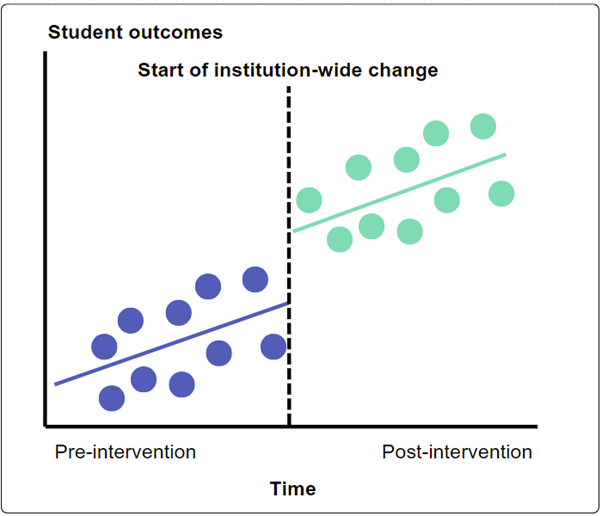 - For the most robust evaluation, requires outcome data before, during and after the intervention.