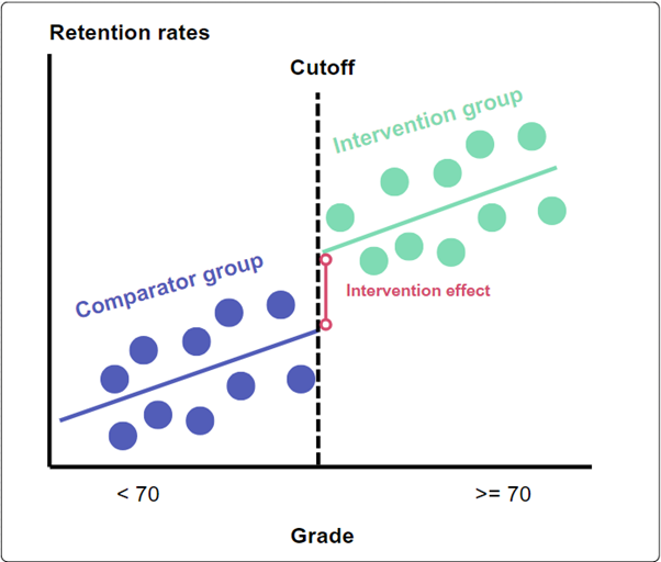 - This method estimates the effect of an intervention for which participant eligibility depends on whether an individual exceeds a threshold or cutoff (e.g. module grade).